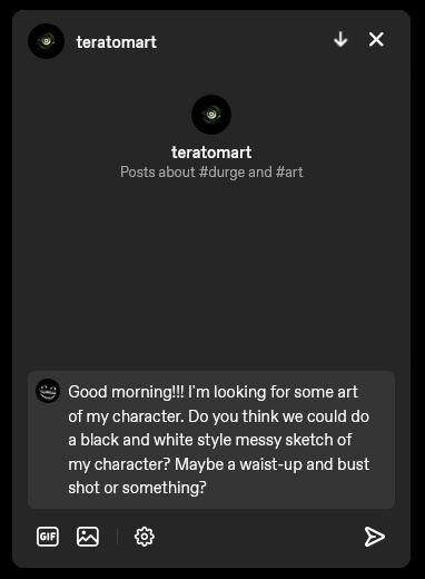 You, the client, reach out to me via BlueSky DMs. You request the following: